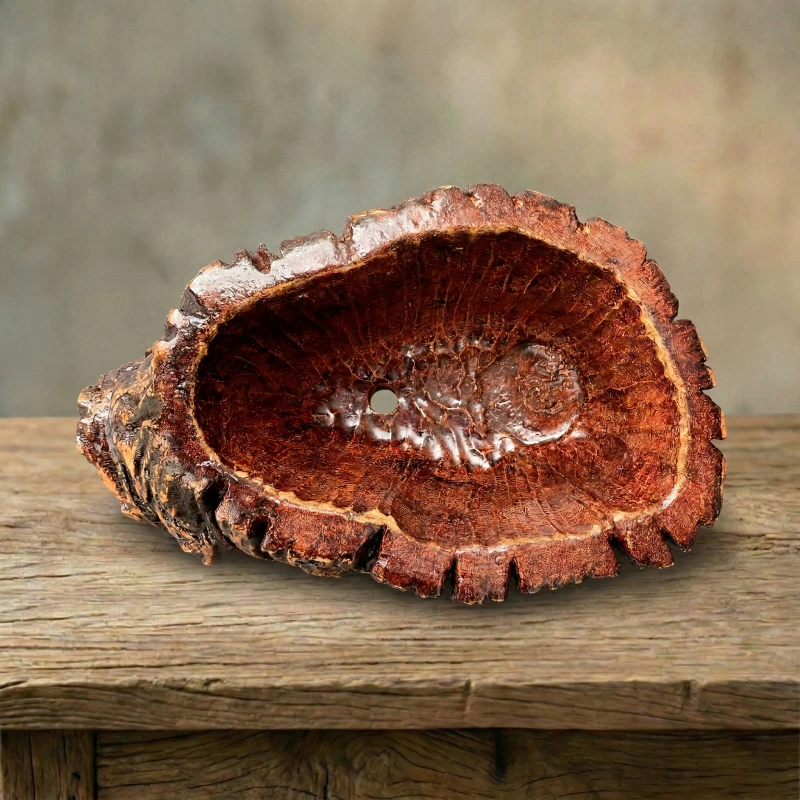 Mang vẻ đẹp nguyên sơ của thiên nhiên vào không gian sống, Chậu Vân Gỗ Nghệ Thuật ZP-001 là sự giao thoa hoàn hảo giữa nét mộc mạc và gu thẩm mỹ tinh tế. Lấy cảm hứng từ những gốc cây lâu năm, sản phẩm tái hiện xuất sắc từng đường nứt dọc sâu thẳm, lớp vỏ sần sùi cùng màu nâu đỏ bóng bẩy, trầm ấm. Lòng chậu được tạo hình khuyết lõm tự nhiên kèm lỗ thoát nước chuẩn xác, biến chiếc chậu không chỉ là vật dụng trồng cây mà còn là một tác phẩm điêu khắc nghệ thuật đầy cảm xúc.
