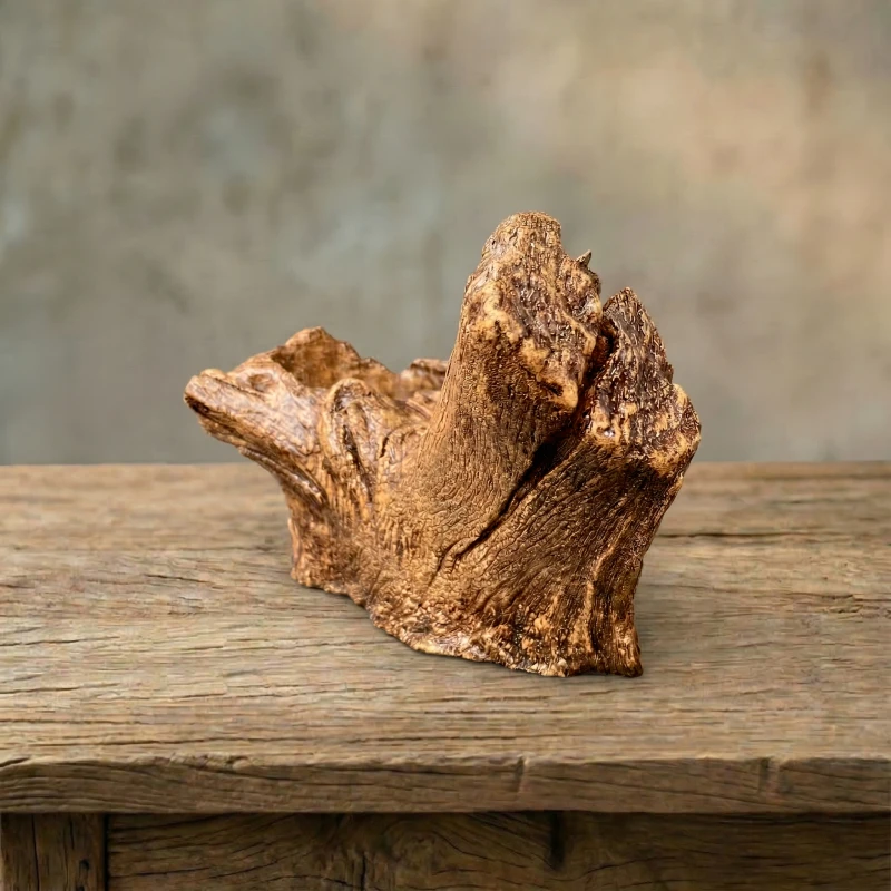 Sở hữu diện mạo nguyên sơ của gỗ lũa nhưng ZP-002 lại mang trong mình sức mạnh vượt trội của dòng chậu bê tông nhẹ. Trải qua quá trình tạo hình thủ công tỉ mỉ và nhiều lớp sơn phủ chuyên dụng, sản phẩm khắc phục được mọi nhược điểm của gỗ tự nhiên: