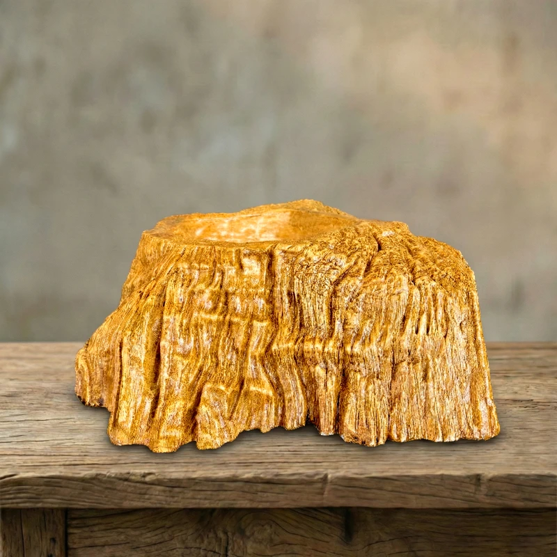 Chậu Vân Gỗ Nghệ Thuật ZP-007 mang trọn vẹn vẻ đẹp nguyên sơ của thiên nhiên vào không gian sống. Được tạo hình khéo léo như một mặt cắt của gốc cây cổ thụ, sản phẩm gây ấn tượng mạnh với lớp vỏ sần sùi chân thực, những đường nứt nẻ tự nhiên và gam màu nâu gỗ trầm ấm. Ở giữa là phần lòng chậu được khoét sâu tinh tế cùng lỗ thoát nước tiện dụng. Đây không chỉ là nơi lý tưởng để ươm mầm xanh mà còn là một tác phẩm decor mộc mạc, thổi hồn vào mọi không gian kiến trúc.