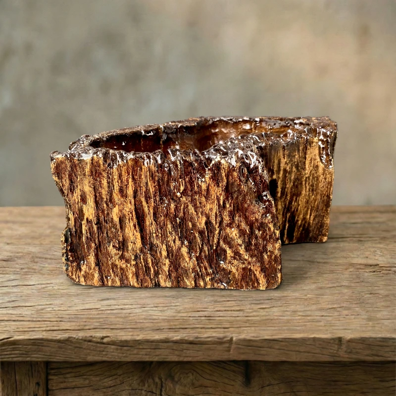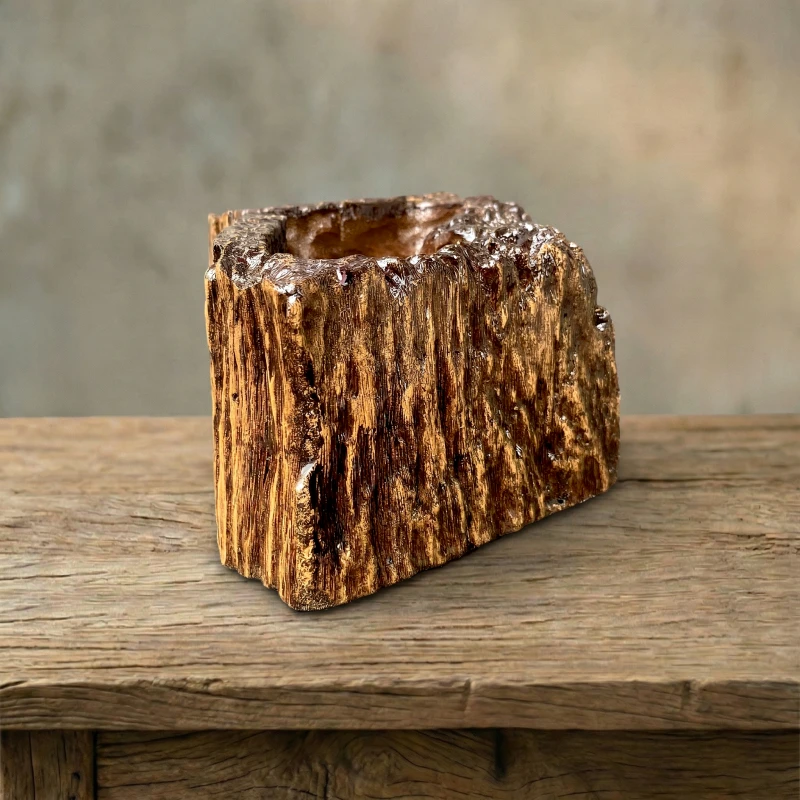 Vượt lên trên công năng của một chiếc chậu để bàn đẹp thông thường, dáng vẻ của thân gỗ lũa mang biểu tượng của sự trường tồn, bền bỉ và sức sống vươn lên mạnh mẽ.