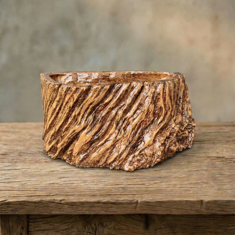 Mang vẻ đẹp nguyên sơ của một gốc cây nhuốm màu thời gian, Chậu Vân Gỗ Nghệ Thuật ZP-019 là điểm nhấn hoàn hảo cho không gian sống xanh của bạn. Lấy cảm hứng từ nét mộc mạc của tự nhiên, từng đường vân gỗ xẻ dọc sâu thẳm, bề mặt gồ ghề chân thực cùng sắc nâu óng ả mang đến một vẻ đẹp ấm áp, vững chãi nhưng cũng vô cùng mềm mại. Đây không chỉ là nơi ươm mầm sự sống mà còn là một tác phẩm nghệ thuật thu nhỏ đầy cảm xúc.