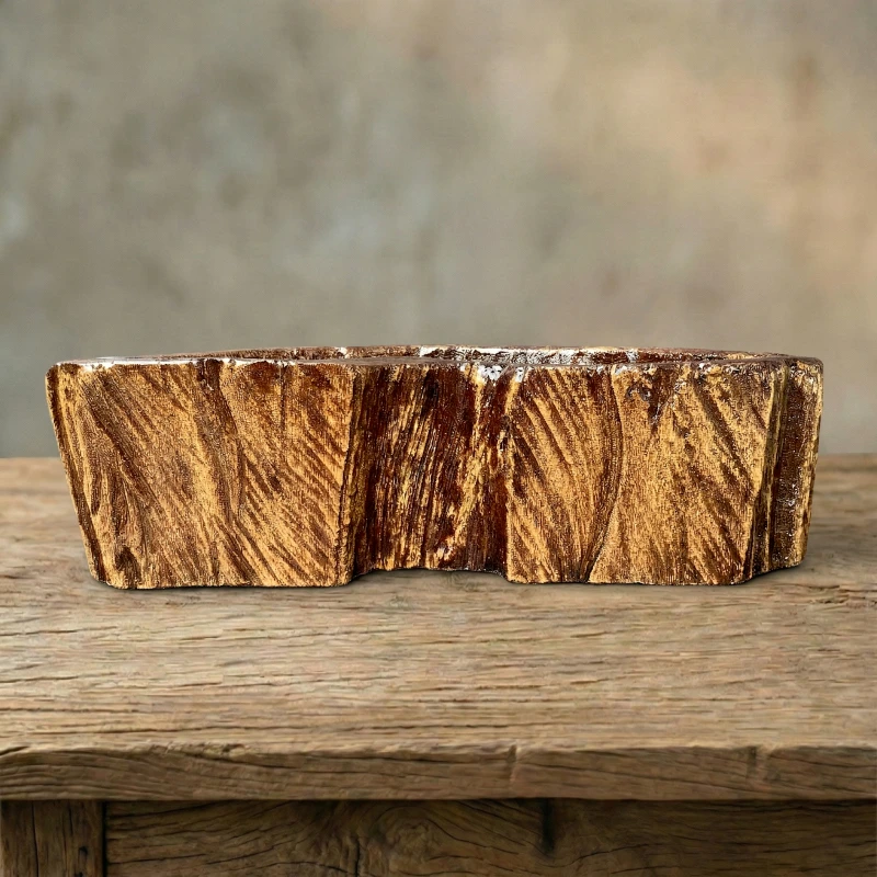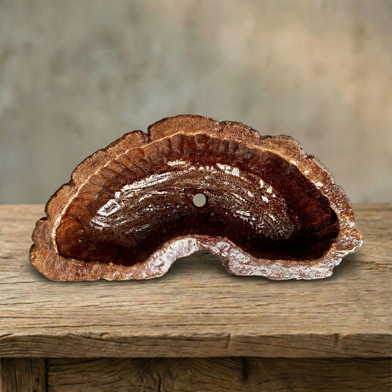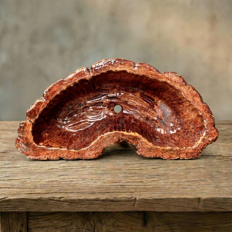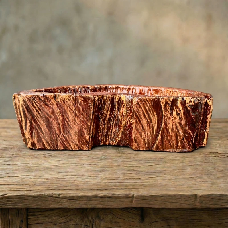 Chậu Vân Gỗ Nghệ Thuật ZP-020 mang đến một nét chạm khắc chân thực của thiên nhiên vào không gian sống. Dựa trên hình ảnh thực tế, chậu sở hữu kiểu dáng vầng trăng khuyết (hoặc hình hạt đậu) vô cùng độc đáo. Bề mặt bên ngoài tái hiện hoàn hảo những khe rãnh sần sùi của vỏ cây cổ thụ với tông màu nâu đỏ ấm áp đan xen những vệt sáng tối tự nhiên. Ngược lại, lòng chậu được phủ bóng mịn tinh tế, trang bị sẵn lỗ thoát nước. Đây không chỉ là một chiếc chậu trồng cây đẹp, mà còn là điểm nhấn decor mang đậm dấu ấn mộc mạc, hoang sơ.